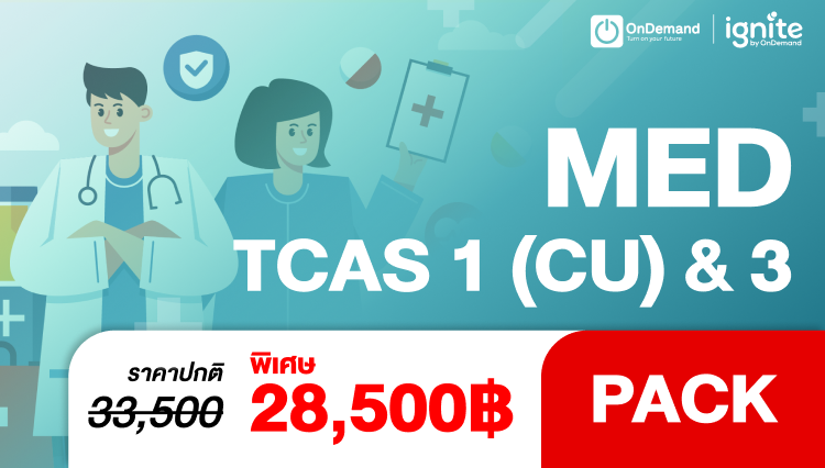 แพ็กเรียนนี้เหมาะสำหรับน้อง ๆ ม.ปลายที่ต้องการสอบแข่งขันเข้าคณะแพทย์ทั้งในสนาม TCAS รอบ 1 พอร์ตฟอลิโอ (แพทย์ จุฬาฯ) และ TCAS รอบ 3 แอดมิชชั่น (กสพท.) ซึ่งน้องสามารถเตรียมตัวผ่านคอร์สเรียนสายวิทย์ที่อัดแน่นที่สุดจาก ignite & OnDemand ครบ 3 วิชาสำคัญ ฟิสิกส์ เคมี ชีววิทยา