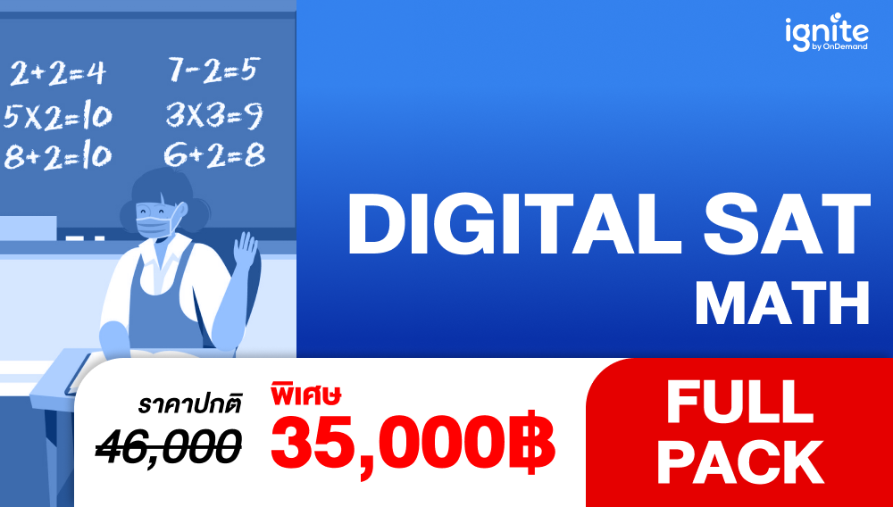 สุดคุ้มกับ Digital SAT Math Pack ราคาประหยัด!! รวมคอร์ส Digital SAT Math ทุกคอร์สครบจบใน PACK เดียว เริ่มจากคอร์สเริ่มต้นที่จะพาน้องๆปูพื้นฐานในบทสำคัญเพื่อต่อยอดในคอร์สถัดไป ตามด้วยคอร์สเนื้อหาที่จะพาน้องเจาะลึกเนื้อหา Digital SAT Math อย่างครบถ้วนทุกหัวขข้อในการออกสอบ พร้อมทริคต่างๆจากพี่ภัทร์ ที่จะช่วยเสริมให้น้องทำข้อสอบได้ไวขึ้น และตะลุยโจทย์ในคอร์ส Advanced เพื่อเก็บข้อยากพิชิตคะแนน Digital SAT Math แบบ Perfect Score และสอบติดคณะในฝัน อีกทั้งยังได้รับสิทธิ์พิเศษต่างๆมากมายในคอร์ส